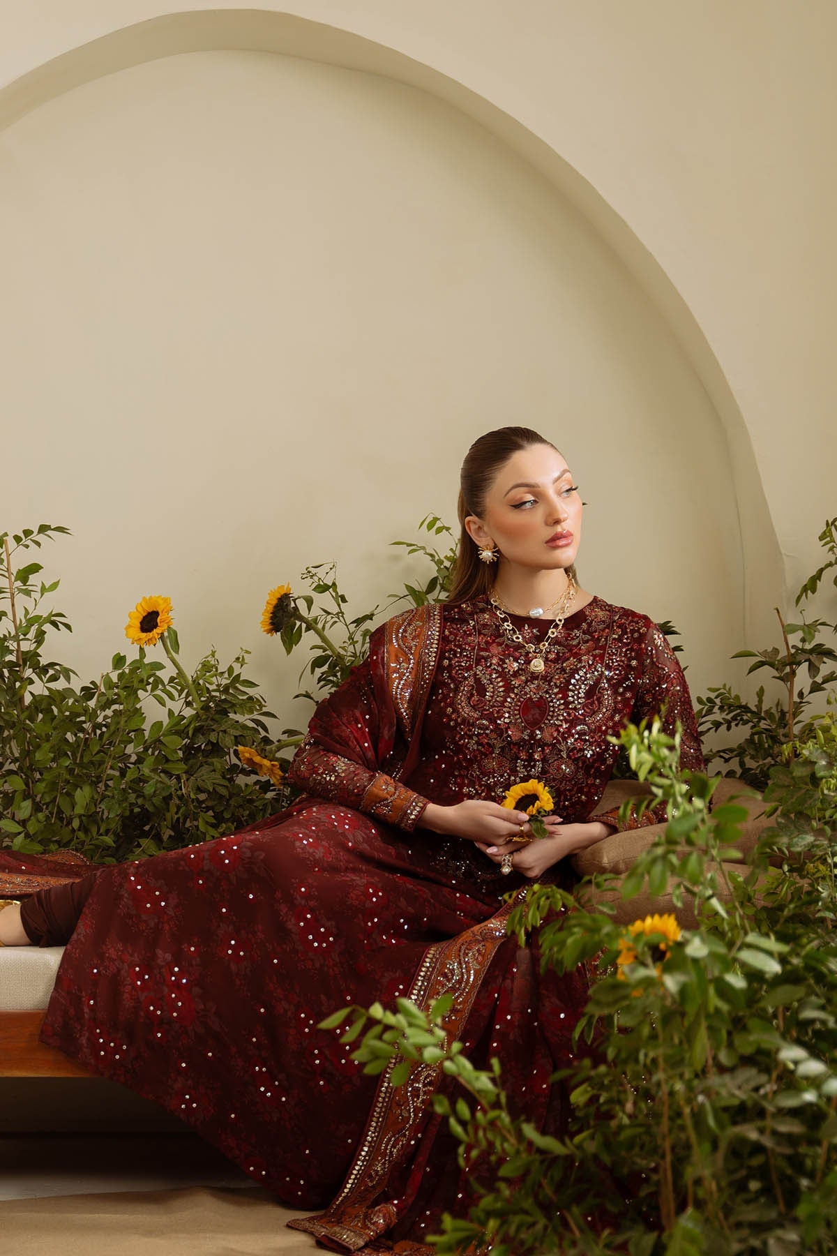- Embroidered And Printed Chiffon Sleeves