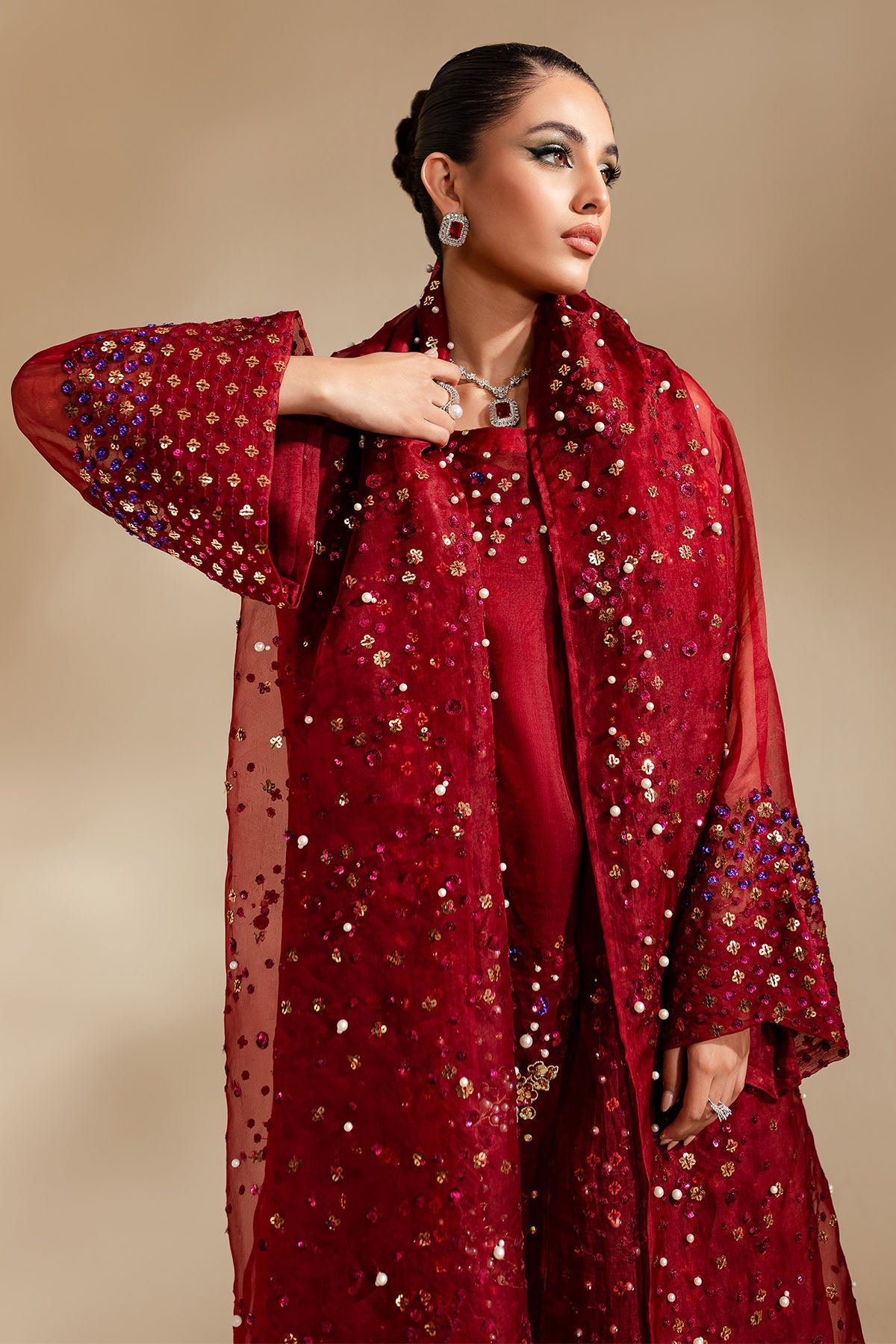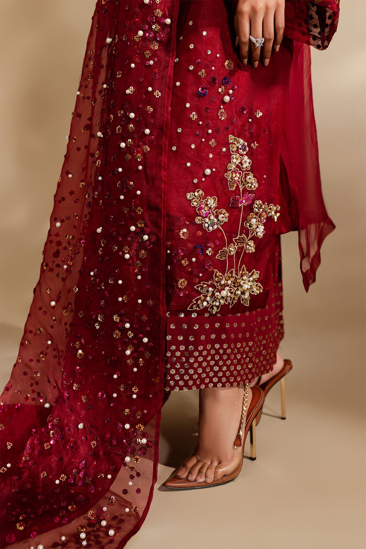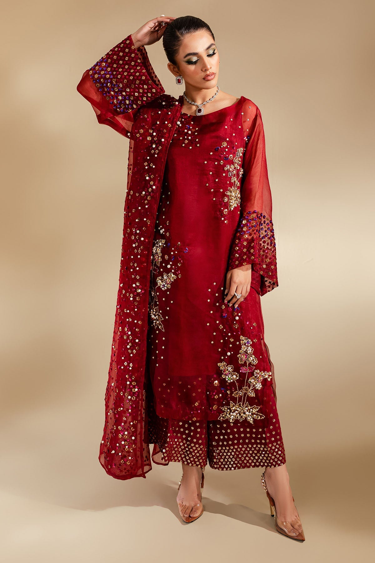 - Embroidered Organza Dupatta With Hand Embellishment