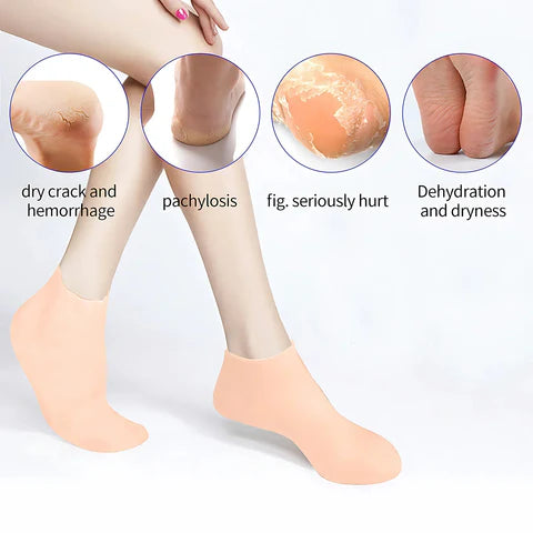 Silicon moisturizer socks ek khas qisam ke naram silicon se banay gaye socks hain jo khushk, phati hui aur sakht heels (eyrhion) ko dobara naram bananay ke liye design kiye gaye hain. Inka maqsad skin ki natural nami (moisture) ko andar lock karna hai taake aapki skin khud ko heal kar sakay. Ye socks dhonay ke baad dobara istemal ho saktay hain aur inhein pehen kar aap ghar ke kaam bhi kar saktay hain ya so saktay hain. Inka material lachakdar hota hai jo har size ke paon par fit aa jata hai.