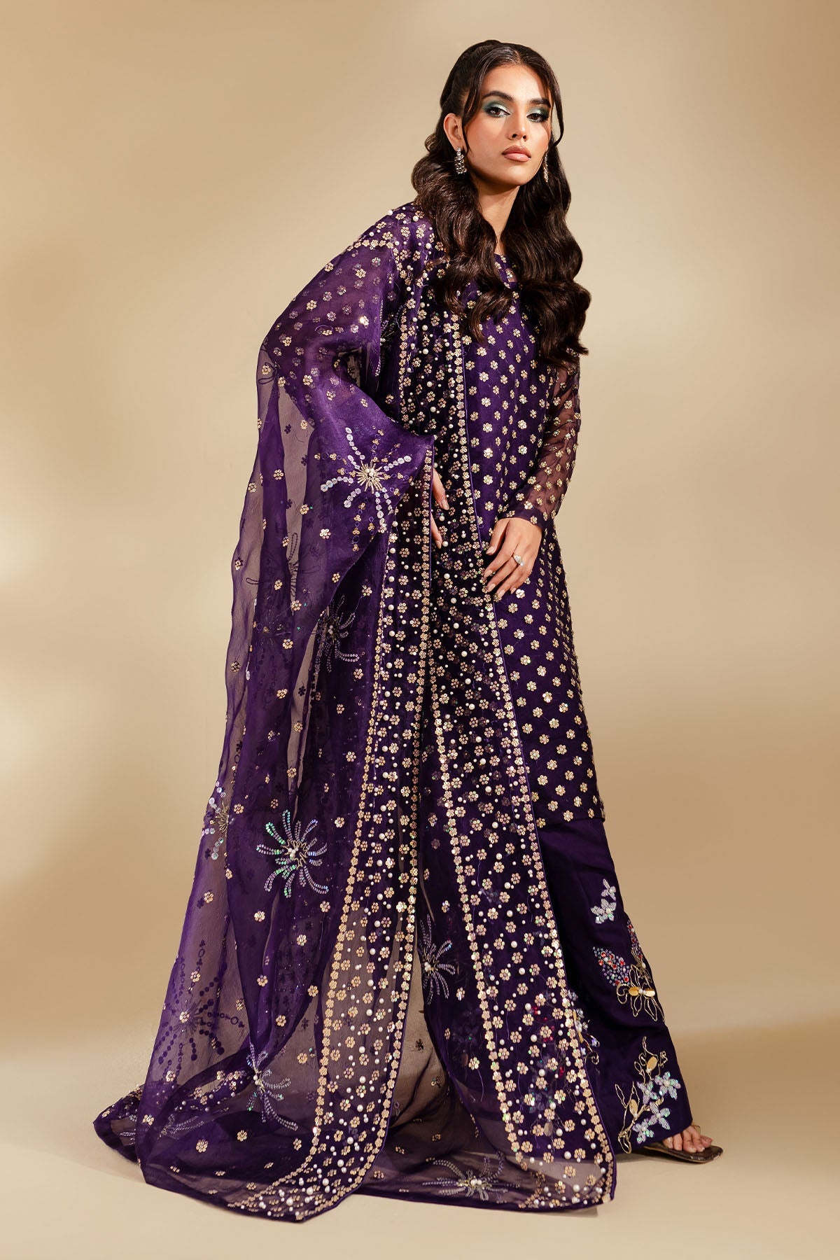- Embroidered Raw Silk Shalwar With Hand-Work Embellishment